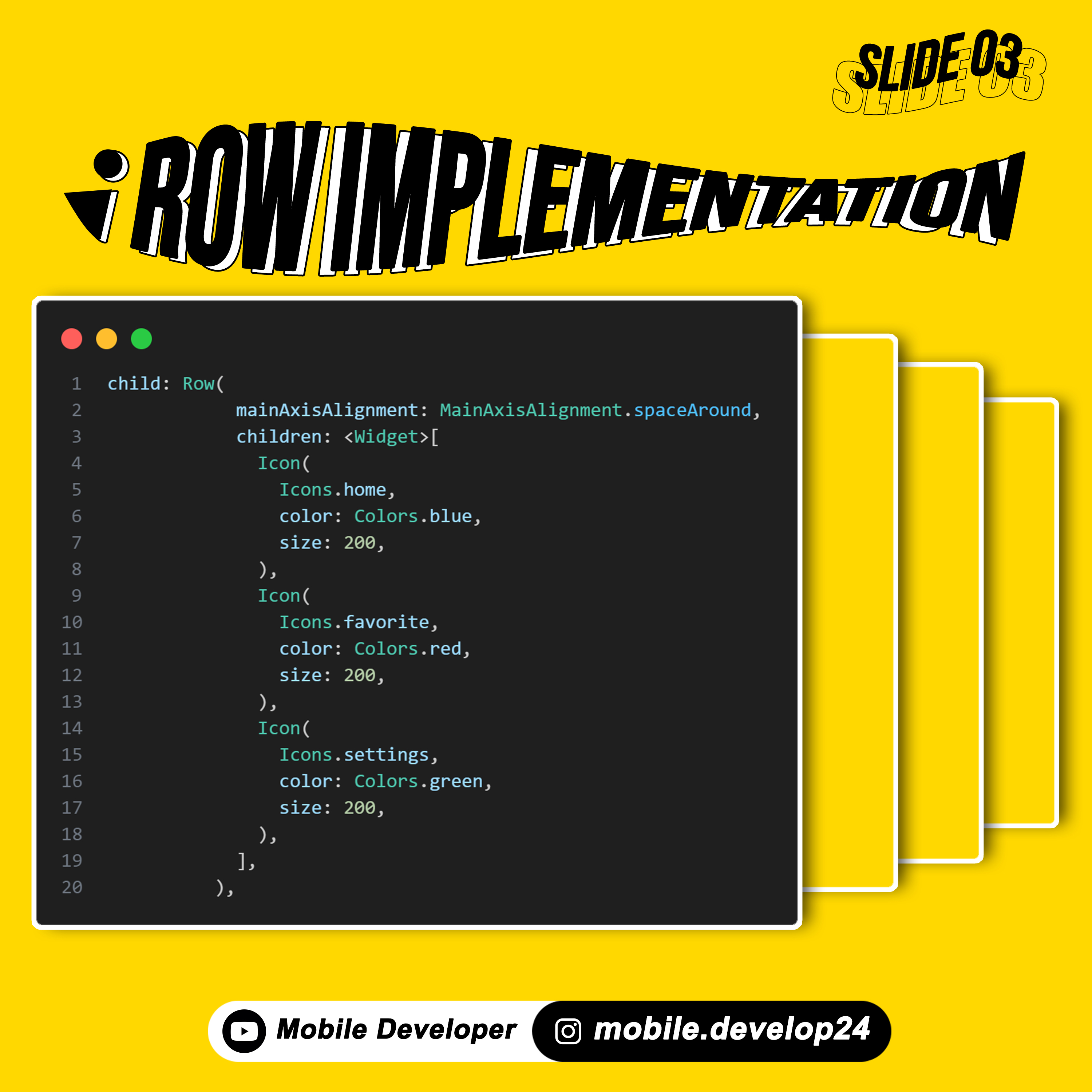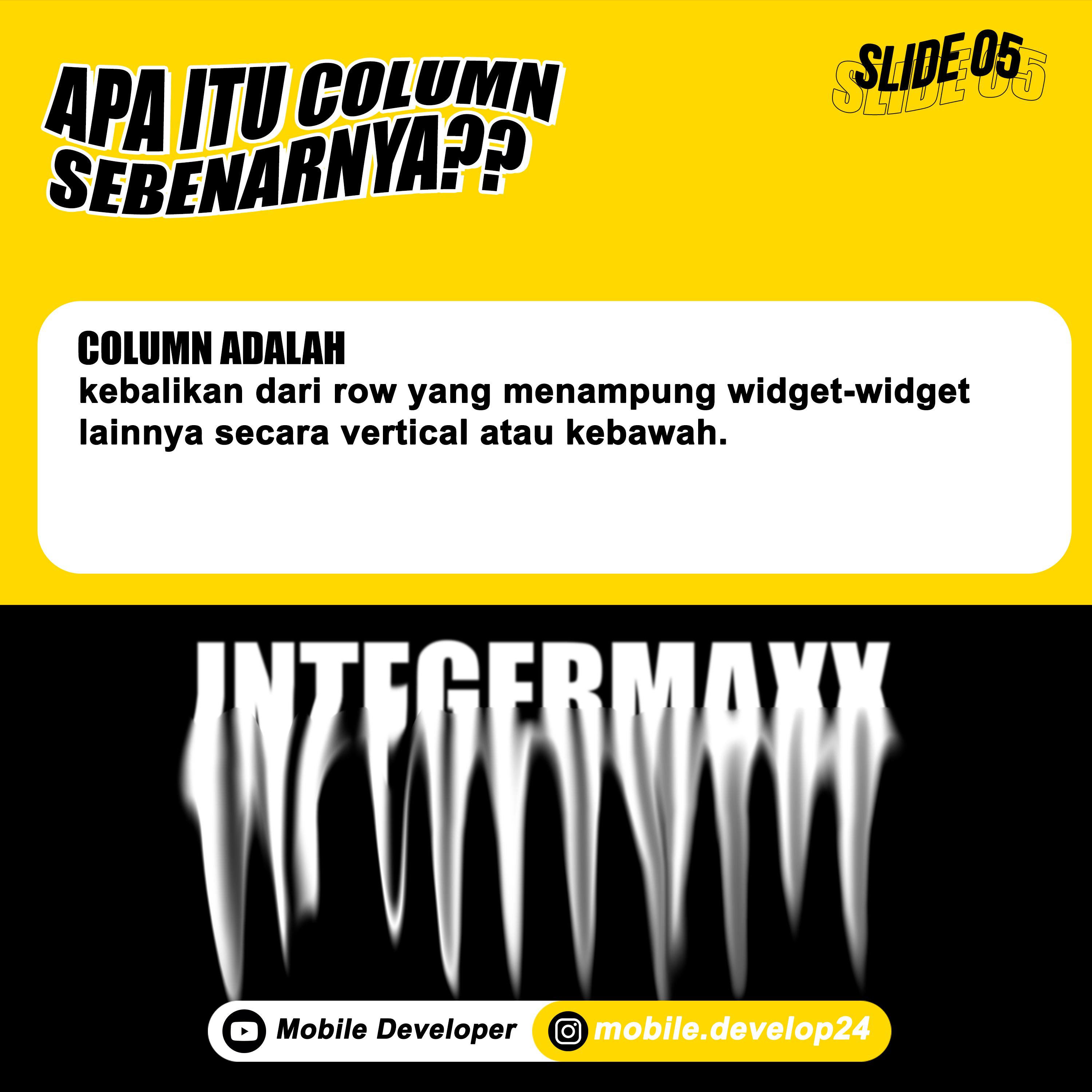 Proyek Instagram Carousel Row dan Column pada Flutter Widget merupakan konten edukatif berbentuk carousel Instagram yang saya kembangkan saat masih kuliah, dengan fokus menjelaskan konsep tata letak dasar pada Flutter, yaitu Row dan Column. Konten ini tidak hanya membahas teori, tetapi juga memperlihatkan cara implementasi serta hasil visualnya, sehingga mudah dipahami oleh pemula.